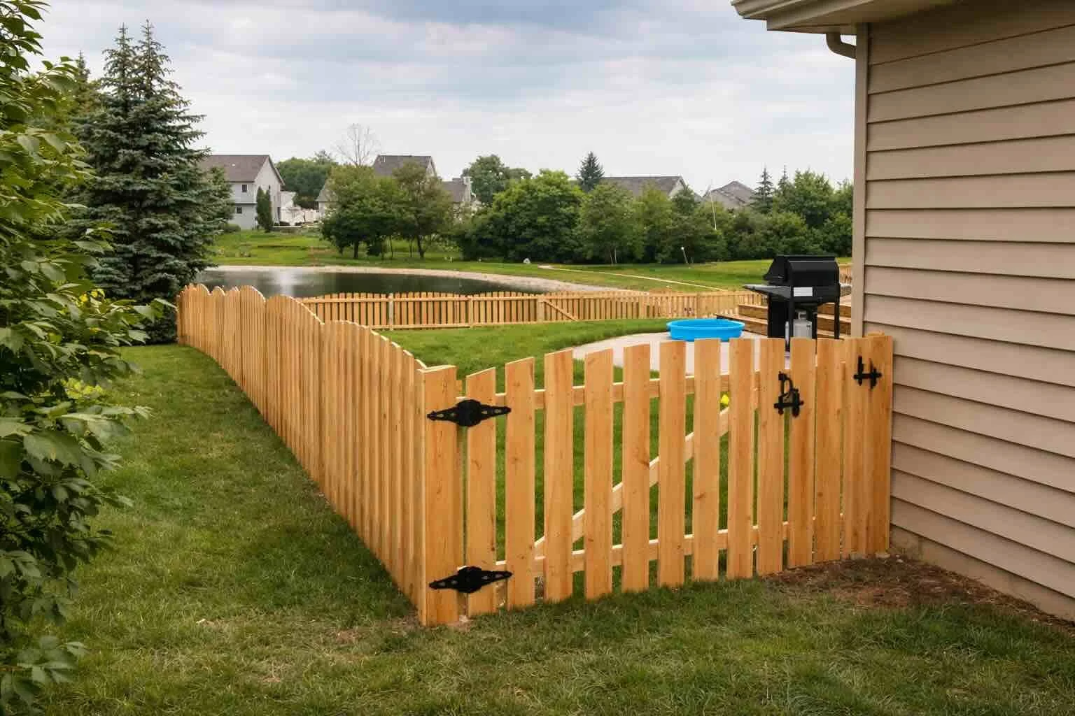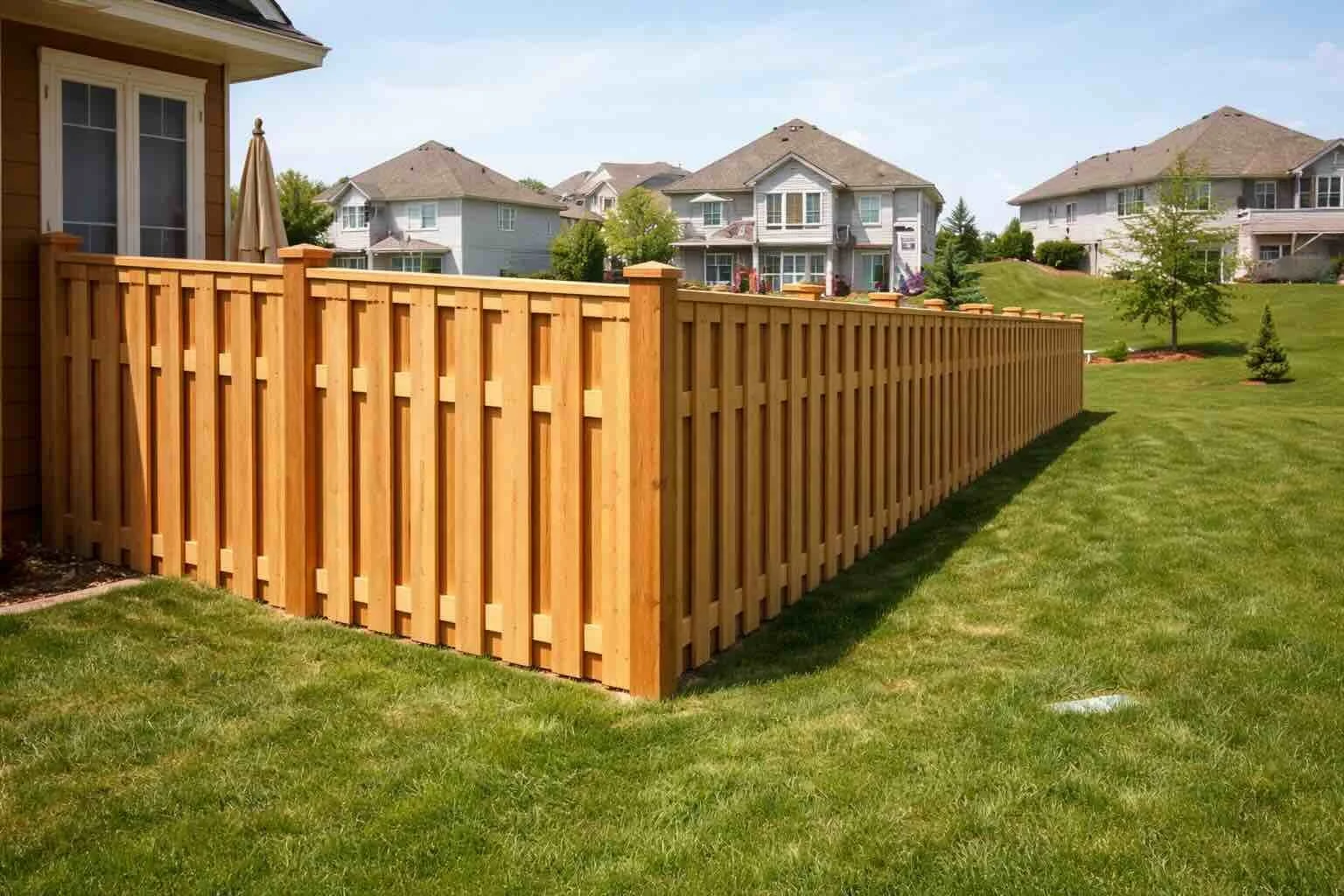 This style is often chosen for properties where the fence is meant to do more than define the boundary. It helps create a more polished overall landscape, improves privacy, and gives the yard a cleaner finished appearance.