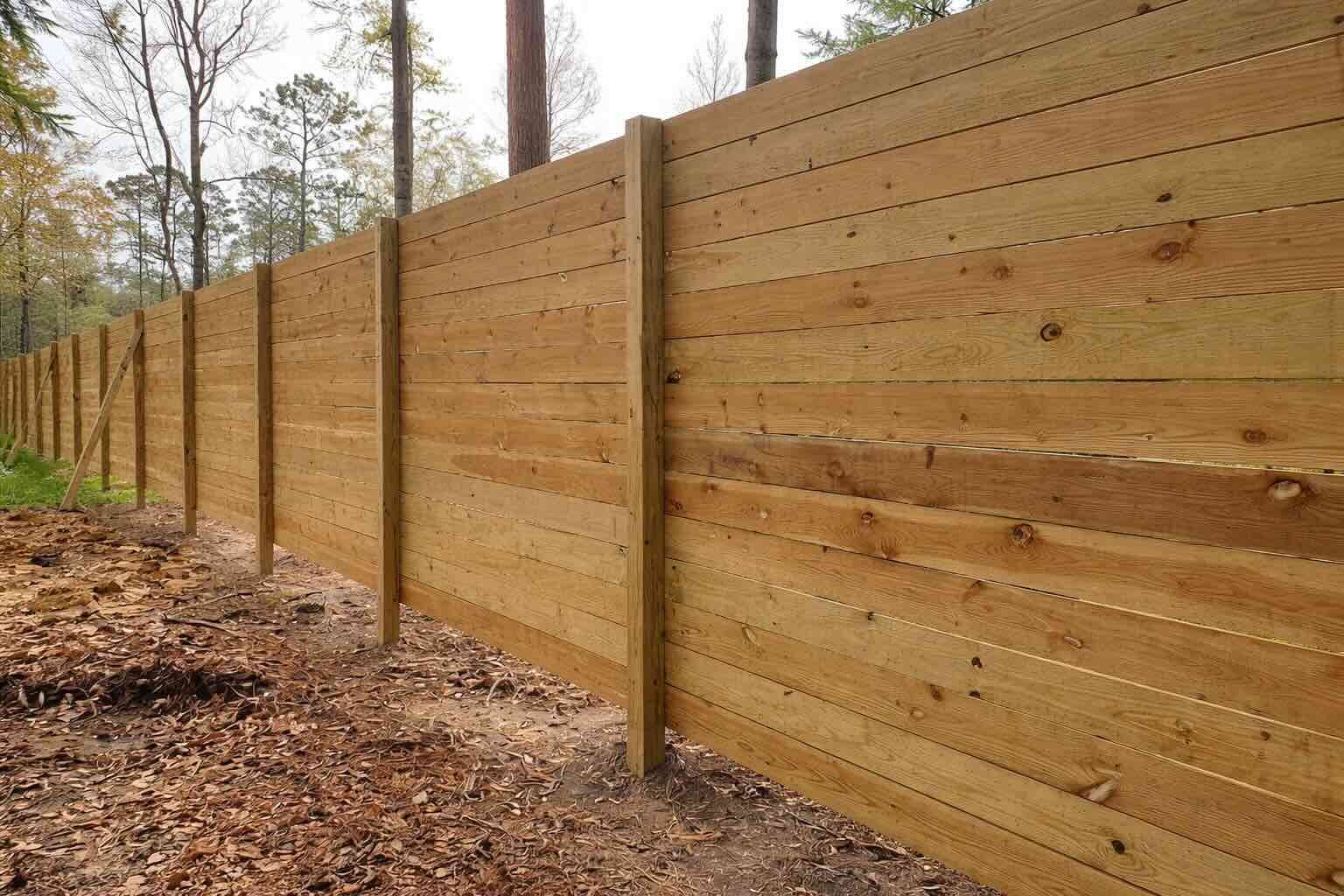 A clean horizontal privacy fence built with closely spaced boards for strong screening and a modern finished look.